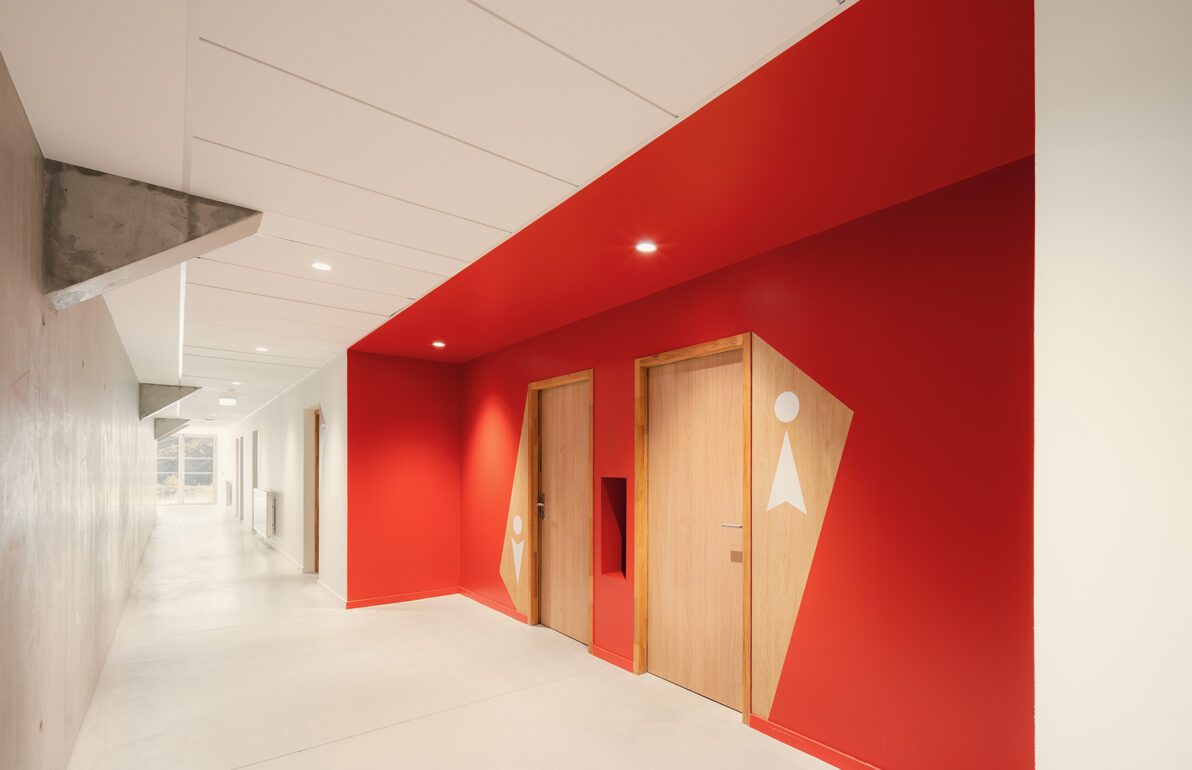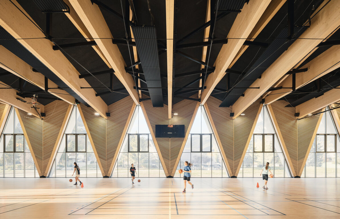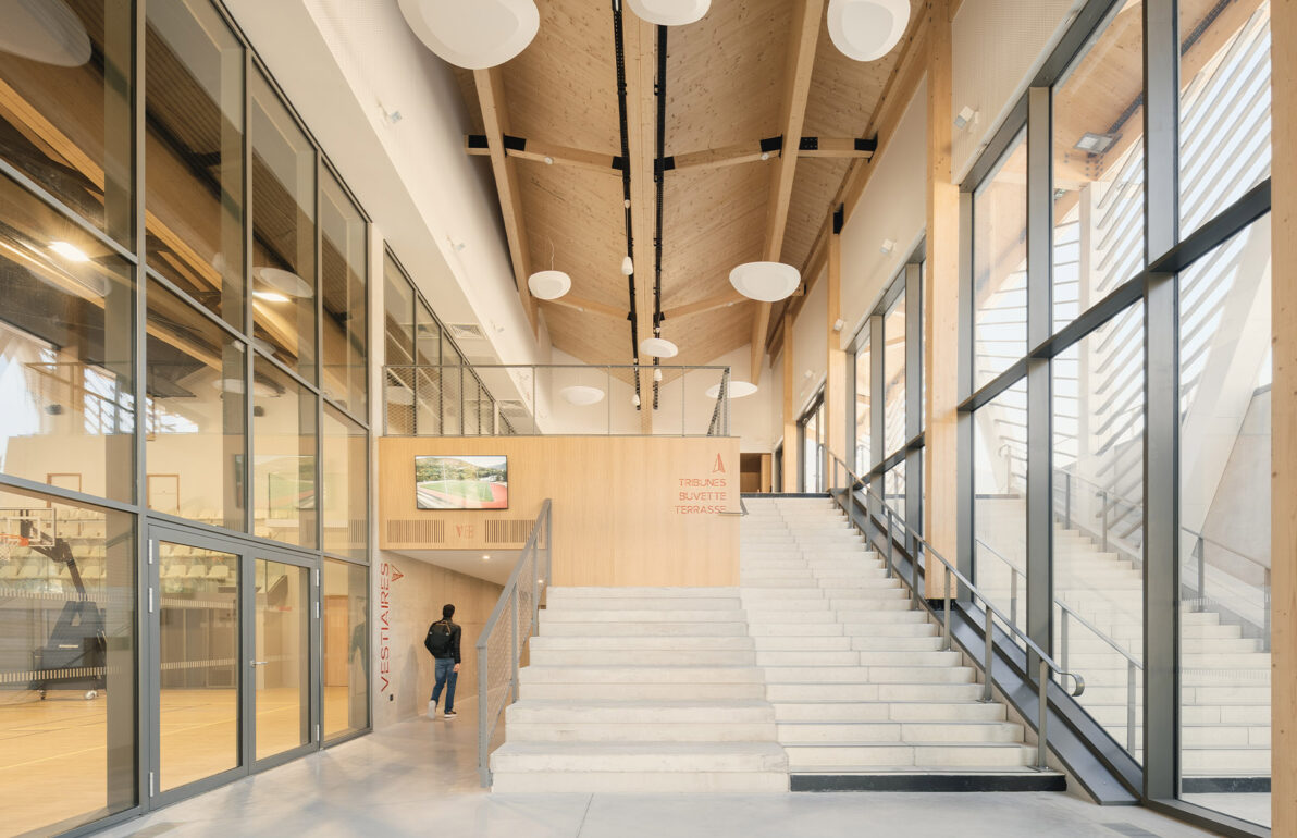 L’équipement propose donc une esplanade d’envergure adaptée, tout en proposant un cadre agréable pour la pratique du sport au quotidien. Le gymnase omnisports créer également une liaison fluide entre les deux